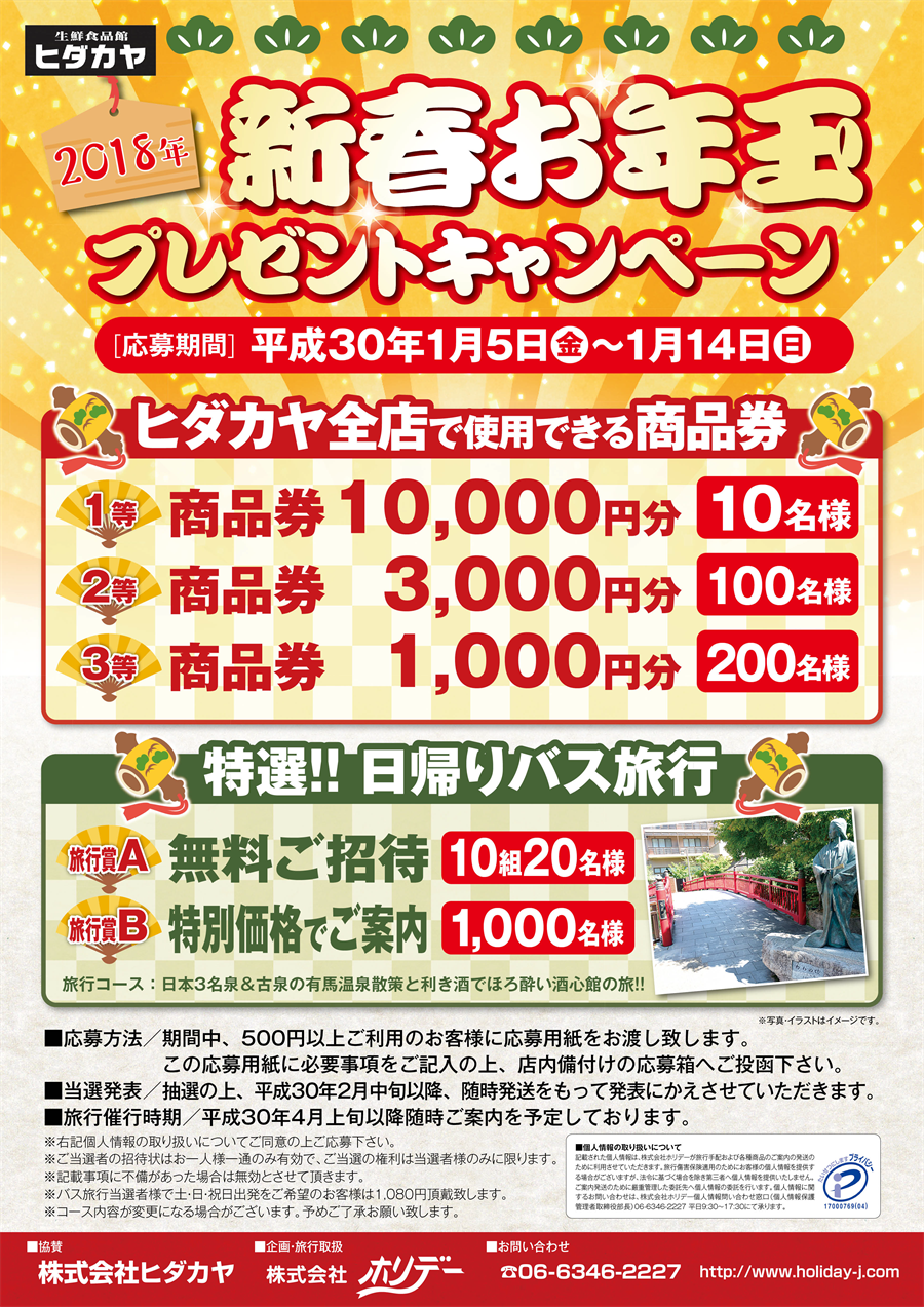 2018年最初のキャンペーンは、ヒダカヤ全店でご利用いただける商品券を抽選でプレゼント!
