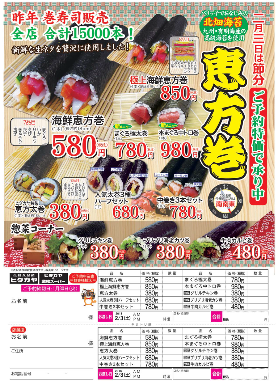 是非、ヒダカヤ自慢の恵方巻をご賞味ください!