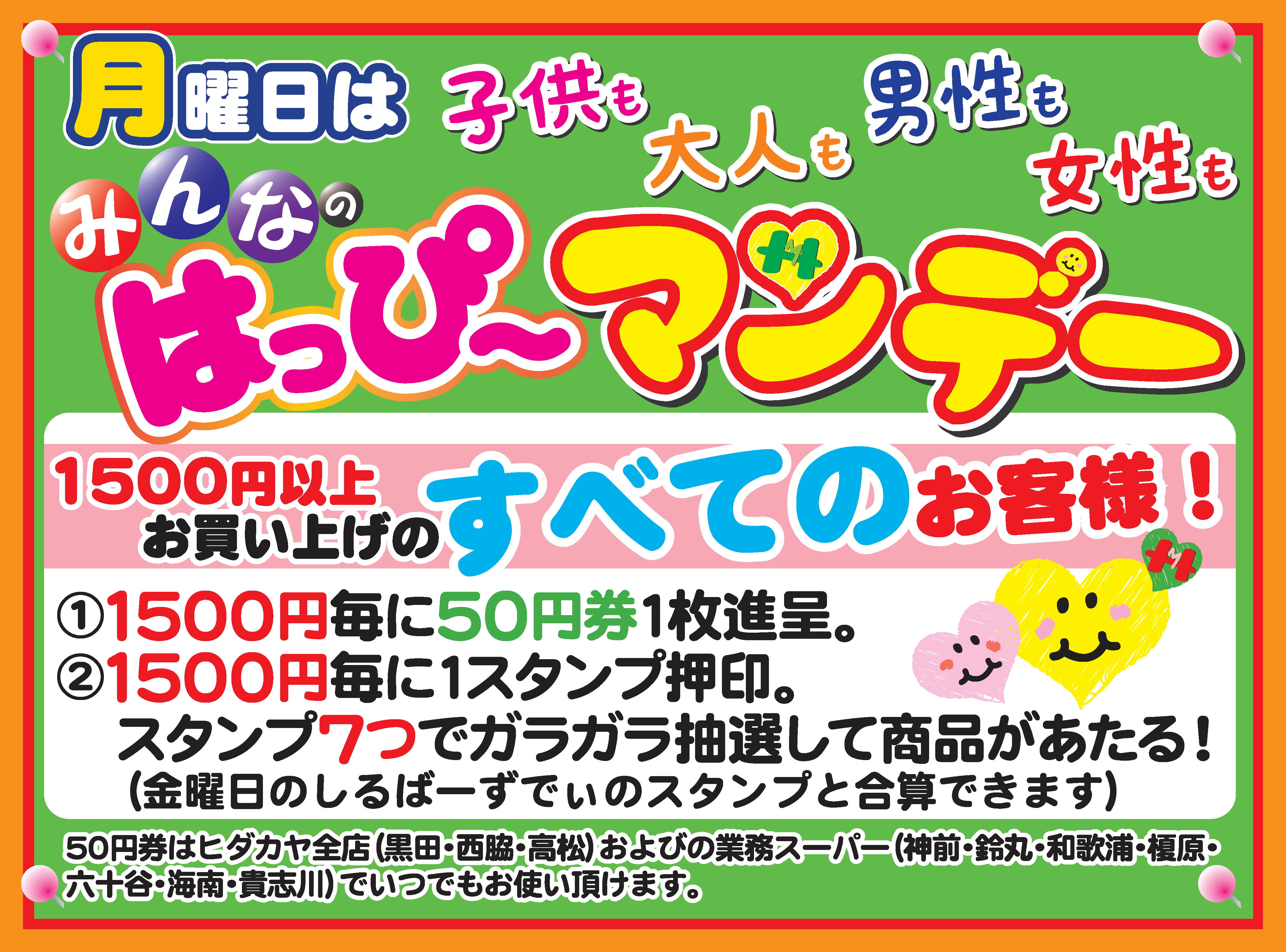 月曜日のサービスデイが皆さんに喜んで頂ける「みんなのはっぴ~マンデー」にパワーアップしました!
