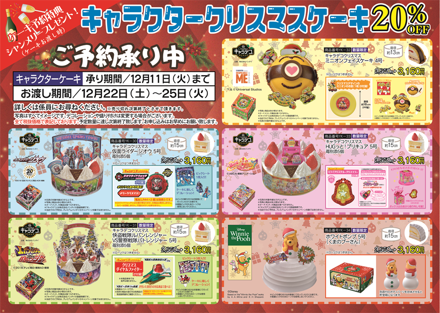 Xmasデコも昨年好評だったキャラクターデコの数量を大幅に増やして対応いたします。