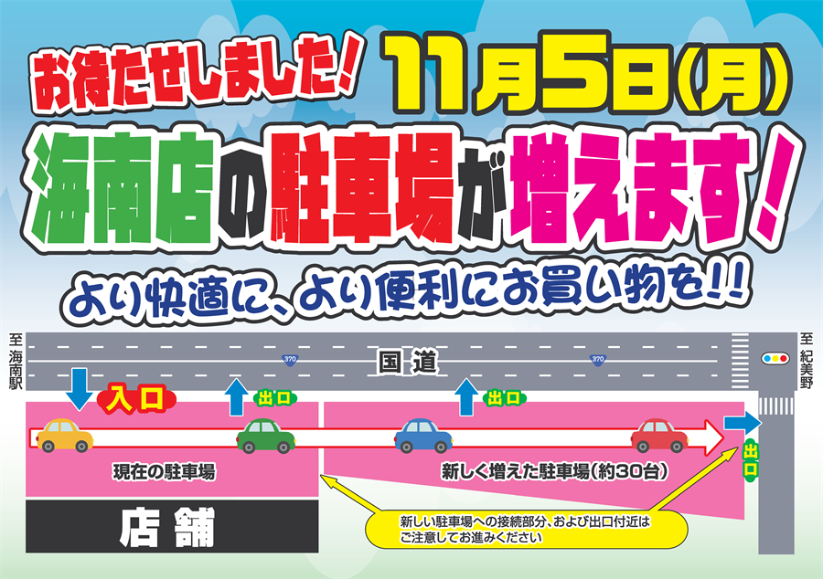【リニューアル】海南店が、より買い物しやすく、より便利に!