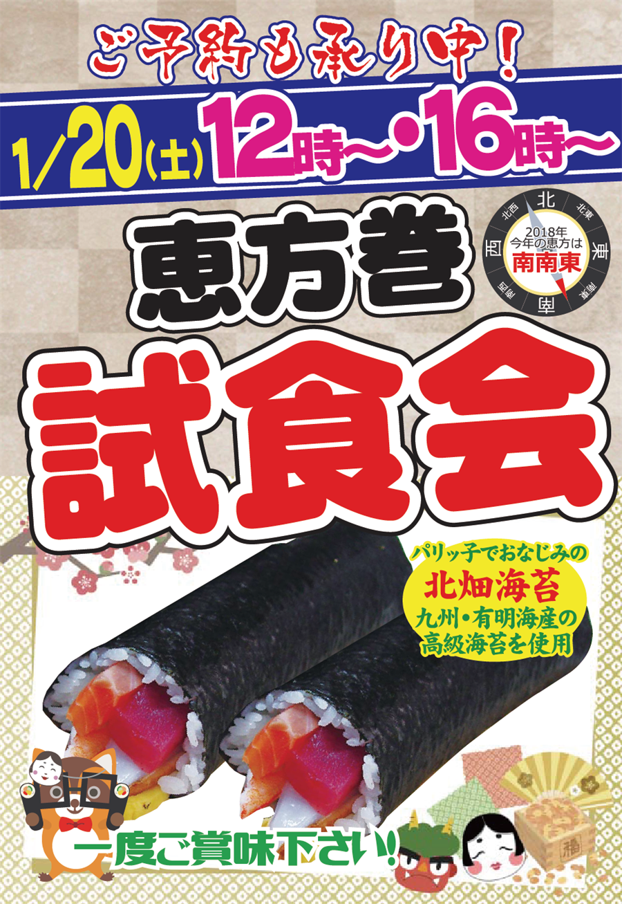 1月20日(土)12時からと16時からの2回、恵方巻の試食会を行います。
