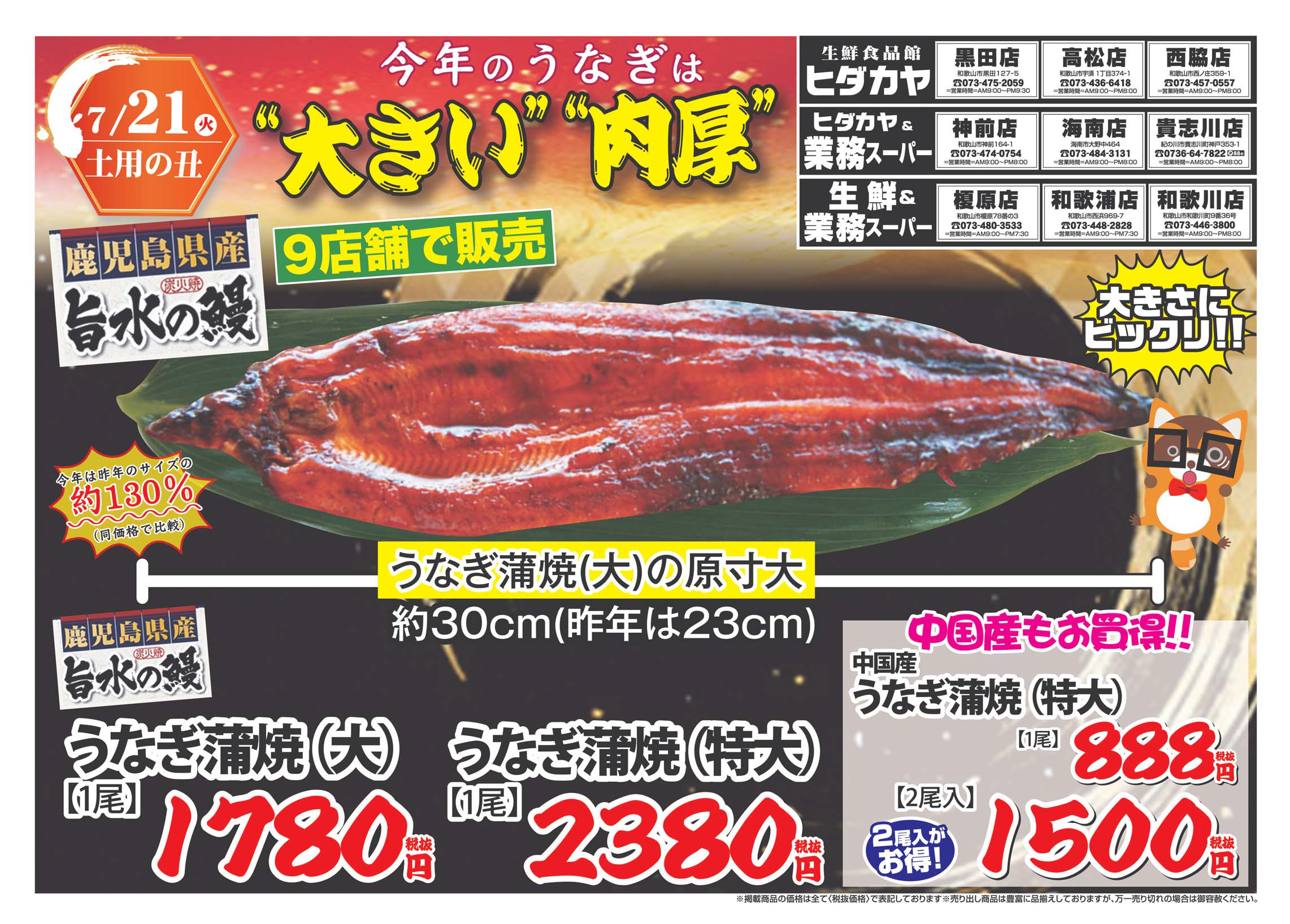 7月21日は土用の丑の日!今年のうなぎは大きくて肉厚!