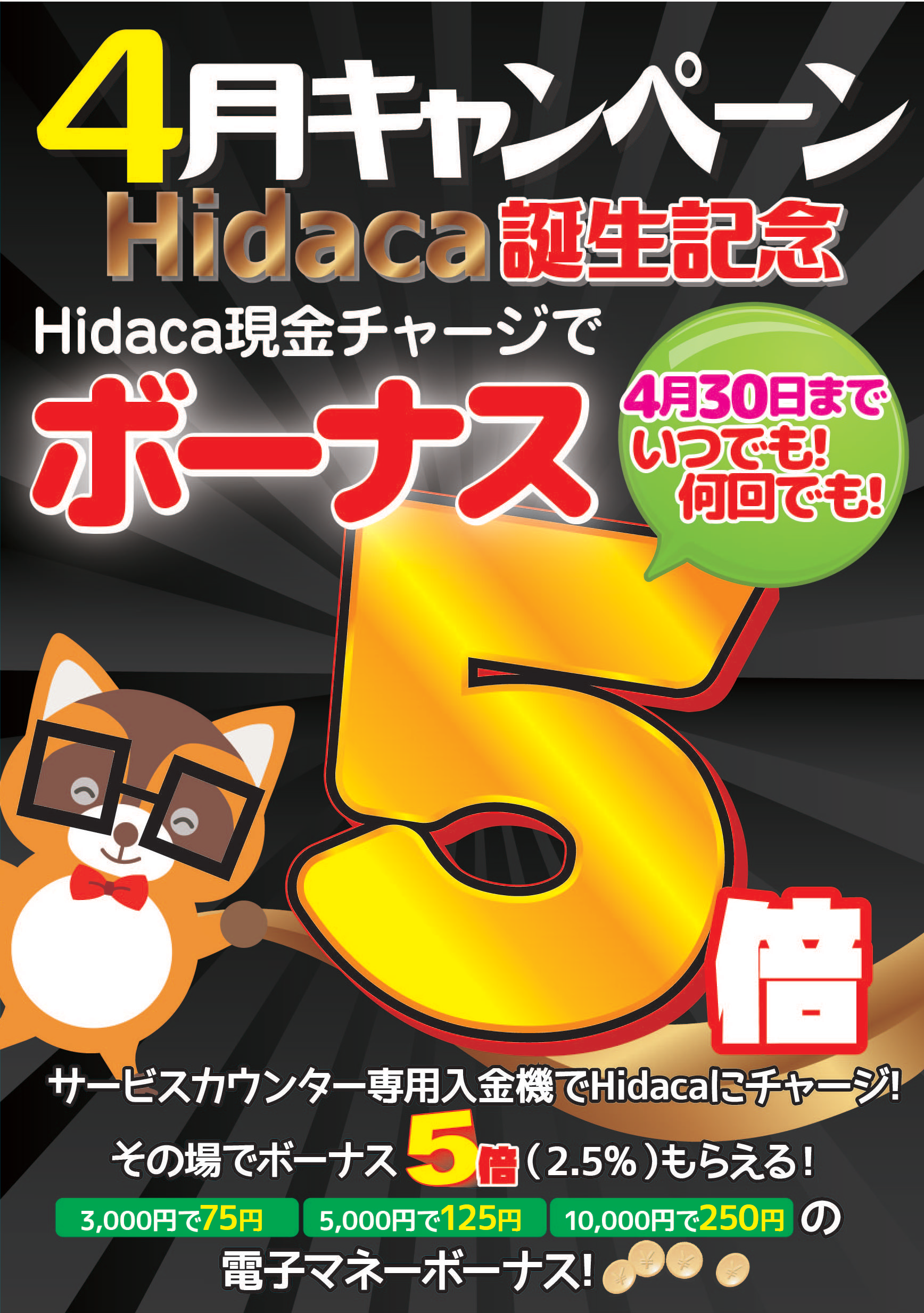 【誕生記念キャンペーン】電子マネー機能付きヒダカヤ会員カード「Hidaca」提供を開始しました